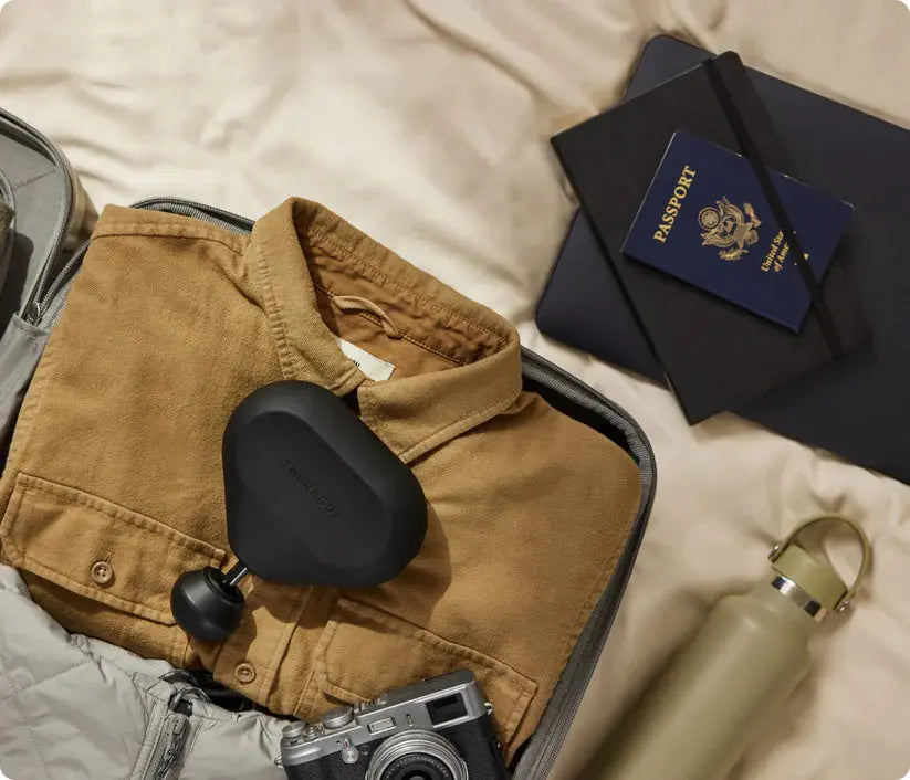 Theragun power, packed into an ultra-portable package to keep you moving wherever you go. Now 20% smaller and 30% lighter, the Theragun mini is proven to relieve aches and pains and improve recovery. Plus, it's Bluetooth-enabled, so you can access our whole library of personalized wellness routines in the Therabody app.