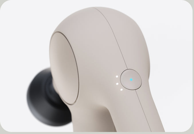 Note: The device does not automatically shut off. To turn off your Theragun Relief, firmly long press the button until the device powers off.